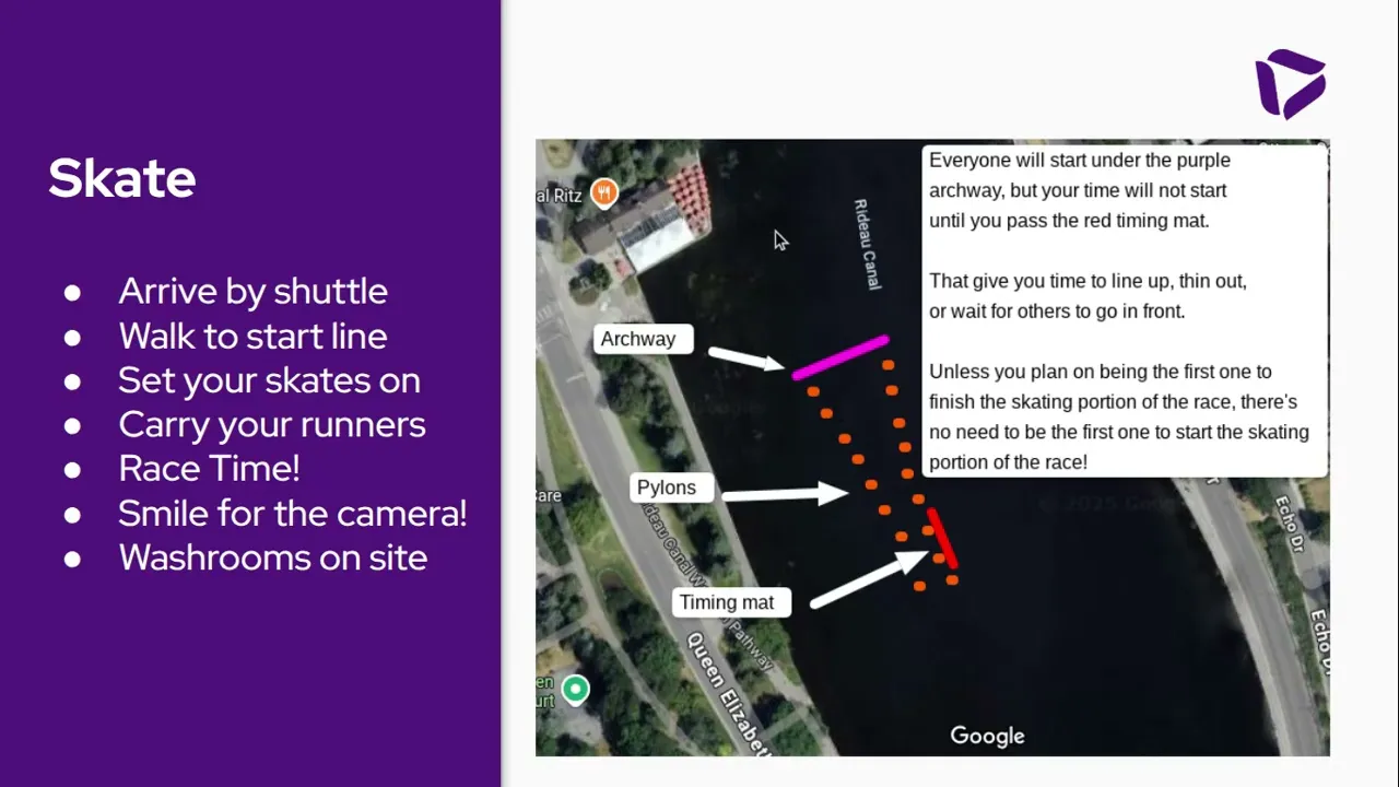7:00am to 7:20am: Athletes will get on the shuttle buses, with their skates, and be bused to The Rideau Canal.